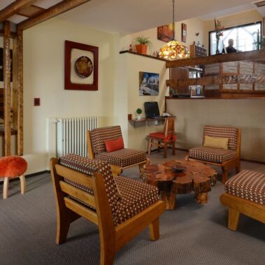 La arquitectura y mobiliario del edificio se caracterizan por el estilo alpino típico de la región. El lobby y las salas comunes presentan cuadros y objetos de decoración exclusivos de artistas patagónicos.